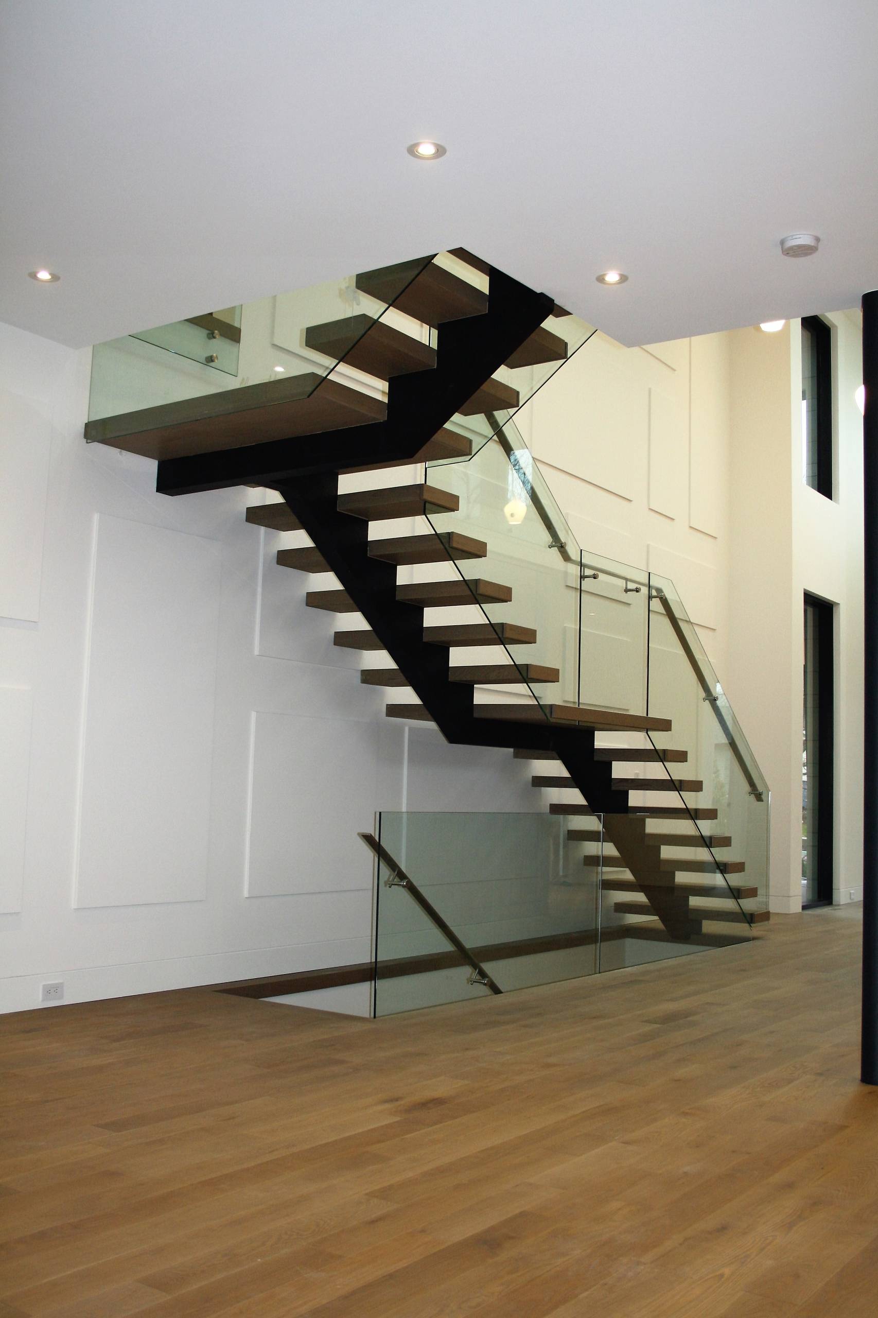 We specialize in wooden floating (built with stringers), curved, modern, contemporary, commerical, and residential staircases for both inside and outside your property that can complete your home or building's look. This means we can install balconies, too. Landings can also be added to staircases, which is flat ground that interrupts the staircase. We also have no problem with glass, metal, wood and wire railings. These railings can also be fitted with handrails if needed.